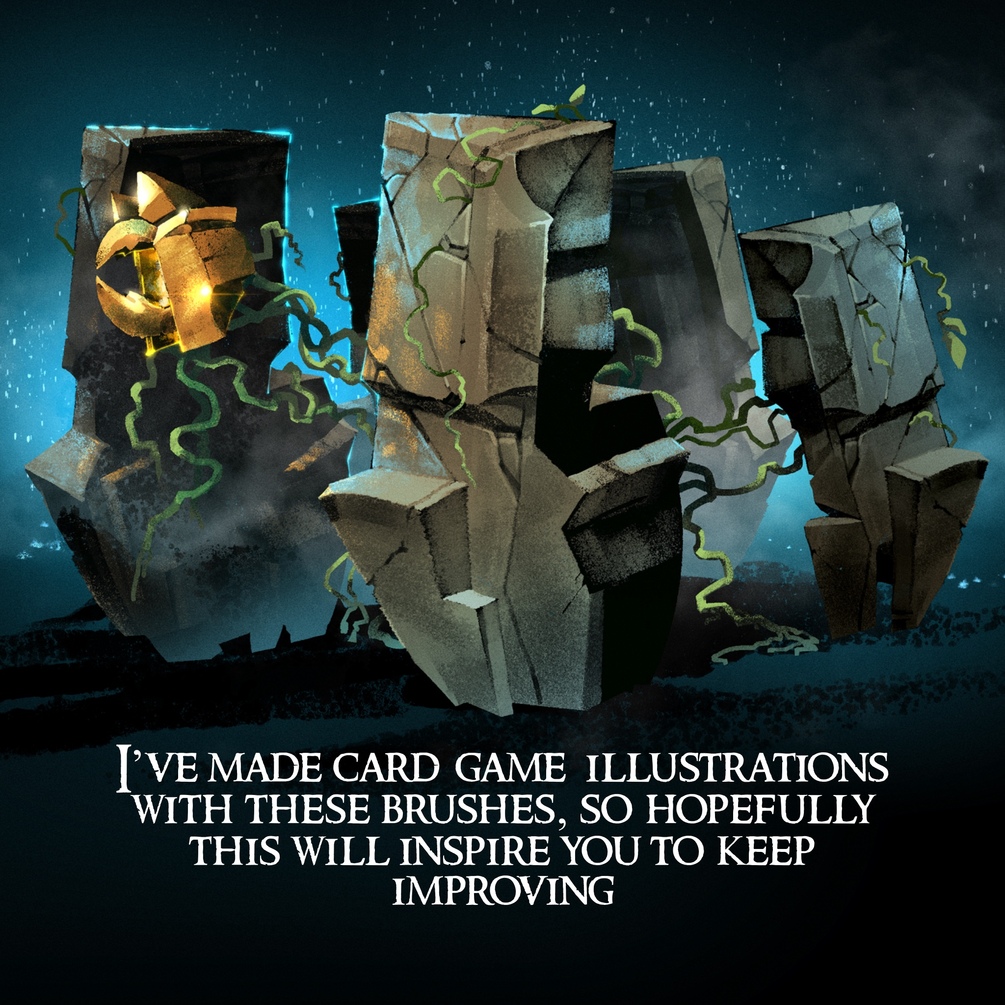 41 brushes for Procreate, designed to naturally add texture to your drawings that resemble metal & stone. Think iron, rocks, frozen steel, sandpaper, and space marine armour (inspired mostly by this one actually).