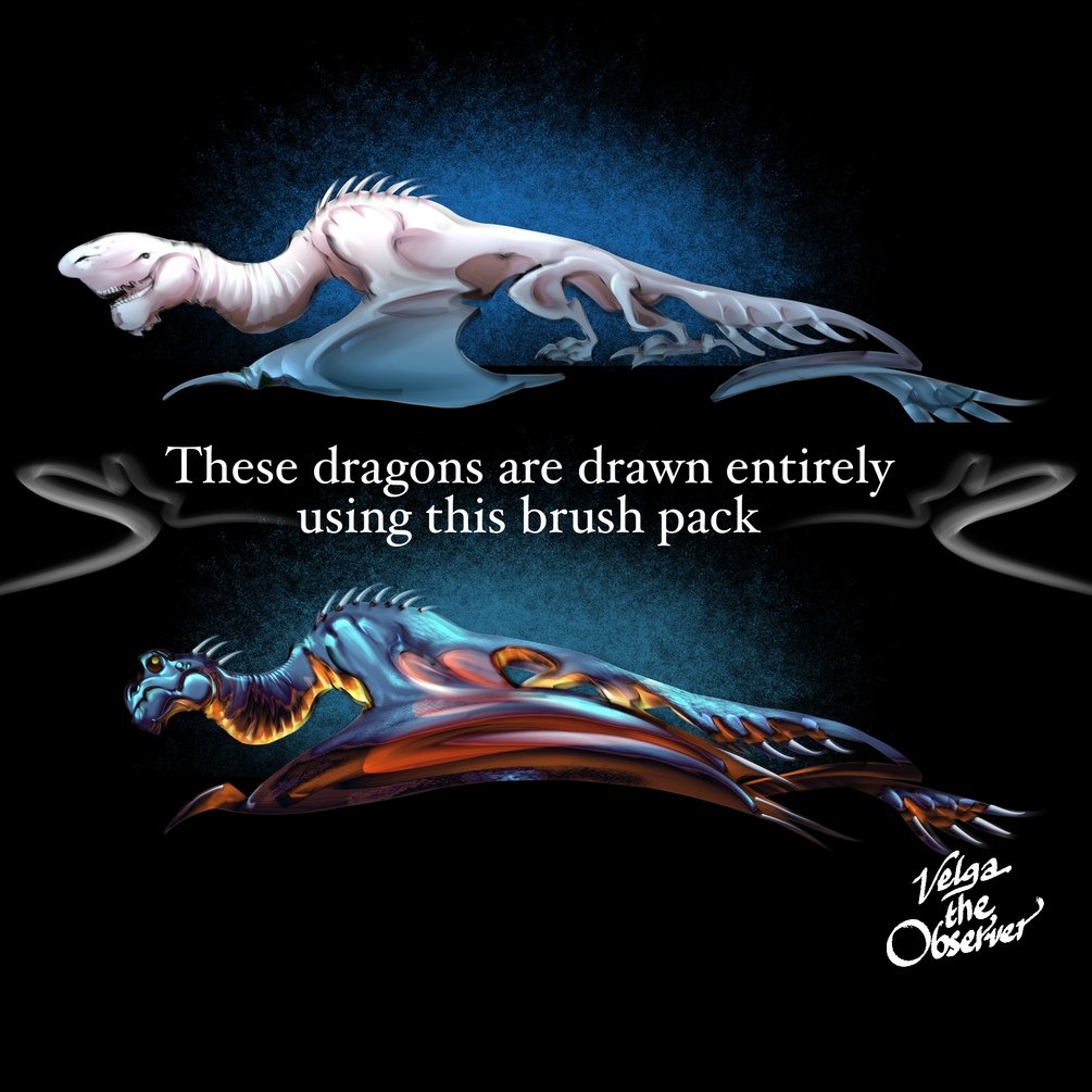 I did initially create this brush pack for sketching, but it is perfectly usable for fully rendered drawings such as this. All 5 dragons are drawn using only this brush pack: